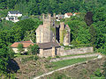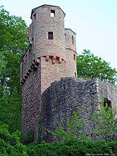 Neckarsteinach's foremost sights are its four castles, which stand on crags or the slope leading down to the Neckar. They are the Vorderburg (“Fore-castle” or “Further Castle”), the Mittelburg (“Middle Castle”), the Hinterburg (“Hind-castle” or “Hinder Castle”) and the Schadeck (also called the Schwalbennest, or “Swallows’ Nest”). The castles were built between 1100 and 1230 by the Landschad von Steinach family, partly as a Worms or Speyer fief, partly as an allodial holding. In the Late Middle Ages, some were owned by various other lords of the lower nobility. In the 16th century, they all found themselves back in the Landschads’ ownership. After the family died out in 1653, they were owned by a line of the von Metternichs, and after they, too, died out in 1753, the castles were held by the Bishoprics of Worms and Speyer. Eventually, with mediatization in 1803, they passed to Hesse, which sold the Vorderburg into private ownership and relinquished the Mittelburg along with the now ruined Hinterburg to those who had inherited the allodial property, the Barons of Dorth, who later also acquired the Vorderburg, whereas they chose to give the Hinterburg ruin back to the state. The Mittelburg, which was built into a Renaissance palace in the 16th century and Gothicized in the 19th century, is nowadays home to the von Warsberg-Dorth family; the Vorderburg is the Warsberg forest administration's seat. The Hinterburg and Schadeck are freely visitable to the public. Particularly worth seeing at the Schadeck is the view over the bow in the Neckar and the Dilsberg mountain fortress over on the other side.
