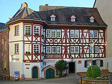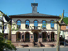 In the 14th century, the town was surrounded with defensive walls by the Landschad family of Steinach, turning the Vorderburg (one of the castles) and the town together into an enclosed fortification. Nevertheless, the town itself was only half owned by the keepers of the Vorderburg, while those of the Hinterburg (another of the castles) owned the other half. In 1377, Neckarsteinach was mentioned as a town for the first time, and at the same time it became an “open house” of Count Palatine Ruprecht, who could then use it in case of a feud against anyone other than the Bishop of Worms as though he were the town's fiefholder. In 1381 the first town hall was built, and in the early 15th century, Neckarsteinach received a town charter, which in the years that followed was changed and expanded. The oldest preserved town charter dates from 1537.