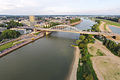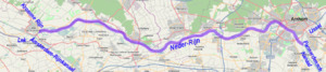 Nederrijn ("Lower Rhine"; not to be confused with the section called Lower Rhine further upstream) is the name of the Dutch part of the Rhine from the confluence at the town of Angeren of the cut-off Rhine bend of Oude Rijn and the Pannerdens Kanaal (which was dug to form the new connection between the Waal and Nederrijn branches). The city of Arnhem lies on the right (north) bank of the Nederrijn, just past the point where the IJssel branches off. The Nederrijn flows on to the city of Wijk bij Duurstede, from where it continues as the Lek. The once-important but now small Kromme Rijn branch (in Roman times part of the Limes Germanicus and border river of the Roman Empire) carries the name "Rhine" towards the city of Utrecht.