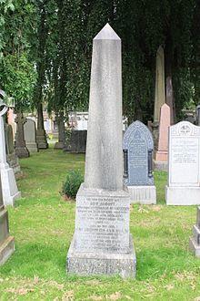 He died in London in 1874 but is buried with his mother in Dean Cemetery in Edinburgh. The simple obelisk lies in the north-west section of the original cemetery, west of the large Beattie obelisk.