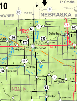 Nemaha County (standard abbreviation: NM) is a county located in the northeastern part of the U.S. state of Kansas. As of the 2010 census, the county population was 10,178.[1] The county seat is Seneca.[2]