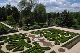The Nemours Mansion and Gardens is a 300-acre (120 ha) country estate with jardin à la française formal gardens and a French neoclassical mansion in Wilmington, Delaware. Built to resemble a French château, its 105 rooms on five floors occupy nearly 47,000 sq ft (4,400 m2). It shares the grounds at 1600 Rockland Road with the Alfred I. duPont Hospital for Children, and both are owned by the Nemours Foundation.[1]