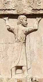 The early Achaemenid rulers had great respect for Babylonia, regarding the region as a separate entity or kingdom united with their own kingdom in something akin to a personal union.[29] The region was a major economical asset and provided as much as a third of the entire Achaemenid Empire's tribute.[30] Despite Achaemenid attention and the recognition of the Achaemenid rulers as Kings of Babylon, Babylonia resented the Achaemenids, like the Assyrians had been resented a century prior. At least five rebels proclaimed themselves King of Babylon and revolted during the time of Achaemenid rule in attempts at restoring native rule; Nebuchadnezzar III (522 BC), Nebuchadnezzar IV (521–520 BC), Bel-shimanni (484 BC), Shamash-eriba (482–481 BC) and Nidin-Bel (336 BC).[31][32][33] The revolt of Shamash-eriba against Xerxes I in particular is suggested by ancient sources to have had dire consequences for the city itself. Though no direct evidence exists[34], Babylon appears to have been punished severely for the revolt. Its fortifications were destroyed and its temples were damaged as Xerxes ravaged the city. It is possible that the sacred statue of Marduk, which represented the physical manifestation of Babylon's patron deity Marduk, was removed by Xerxes from Babylon's main temple, the Esagila, at this time. Xerxes also divided the previously large Babylonian satrapy (composing virtually all of the Neo-Babylonian Empire's territory) into smaller sub-units.[32]