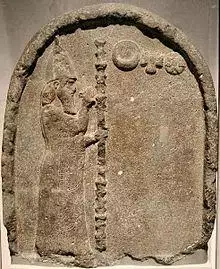 | Stylized symbol of the sun-god Shamash, often represented on poles as a standard from the Akkadian period down to the Neo-Babylonian period.[3] | |||||||||