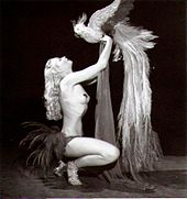 A new generation nostalgic for the spectacle and glamour of the old times was determined to bring burlesque back. The first neo-burlesque club in NYC was the Blue Angel Cabaret, 1994.[8] The Red Vixen Burlesque,[9] which followed in 1998, served as a launchpad for some of the better known neo-burlesque dancers working today, including Dirty Martini and Julie Atlas Muz. Le Scandal Cabaret, founded in 2001, is a direct offshoot of the Blue Angel, and is still currently running in NYC in 2018.[8][10] This revival was originally pioneered independently in the mid 1990s by Billie Madley (e.g., "Cinema", Tony Marando's "Dutch Weismanns' Follies" revue) in New York and Michelle Carr's "The Velvet Hammer Burlesque" troupe in Los Angeles.[11] In addition, and throughout the country, many individual performers were incorporating aspects of burlesque in their acts. These productions, inspired by Sally Rand, Tempest Storm, Gypsy Rose Lee, Dixie Evans and Lili St. Cyr amongst others have themselves gone on to inspire a new generation of performers.