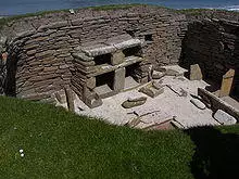 Populations began to rise after 3500 BCE, with further dips and rises occurring between 3000 and 2500 BCE but varying in date between regions.[13] Around this time is the Neolithic decline, when populations collapsed across most of Europe, possibly caused by climatic conditions, plague, or mass migration. A study of twelve European regions found most experienced boom and bust patterns and suggested an "endogenous, not climatic cause".[14] Recent archaeological evidence suggests the possibility of plague causing this population collapse, as mass graves dating from around 2900 BCE were discovered containing fragments of Yersinia pestis genetic material consistent with pneumonic plague.[15]