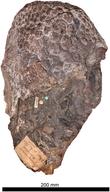 Among macronarians, fossilized skin impressions are only known from Haestasaurus, Tehuelchesaurus and Saltasaurus. Haestasaurus, the first dinosaur known from skin impressions, preserved integument over a portion of the arm around the elbow joint approximately 19.5 by 21.5 cm (7.7 by 8.5 in) in area. Small, hexagonal scales are preserved, ranging from 1–2.5 cm (0.39–0.98 in) in diameter. It has been suggested that the convex surface of the scales was from the internal size of the integument, facing the bones, but this has been rejected as the convex surfaces are preserved on the outside of Saltasaurus and titanosaur embryos.[22] Dermal impressions are more widespread in the material of Tehuelchesaurus, where they are known from the areas of the forelimb, scapula and torso. There are no bony plates or nodules, to indicate armour, but there are several types of scales. Skin associated with the scapular blade is the largest, arranged in rosettes (spiral formations) with a smooth, hexagonal shape. These largest tubercles are 2.5–3 cm (0.98–1.18 in), surrounded by smaller 1.5–2 cm (0.59–0.79 in) scales. The other type of scales are very small, only between 1 and 4 mm (0.039 and 0.157 in) in diameter, and are preserved in small fragments from the forelimb and thoratic region. Ths skin types are overall more similar to those found in diplodocids and Haestasaurus than in the titanosaur embryos of Auca Mahuevo.[23] As the shape and articulation of the preserved tubercles in these basal macronarians are similar in other taxa where skin is preserved, including specimens of Brontosaurus excelsus and intermediate diplodocoids, such dermal structures are probably widespread throughout Neosauropoda.[22]