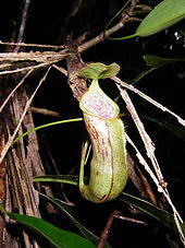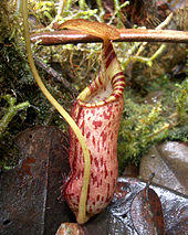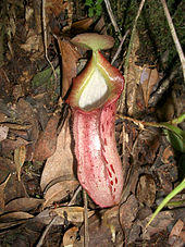 Lower pitchers frequently develop embedded in detritus and leaf litter on the forest floor, resulting in their often deformed appearance.[6] Bruce Salmon noted that lower pitchers which develop in this way grow around twice as large as those which develop completely above ground. He postulated that the species is adapted to trapping subterranean insects, although he did not examine the contents of these pitchers to test the hypothesis.[9][14]