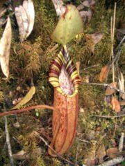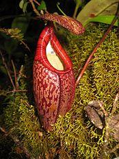 The form of N. spectabilis from Mount Bandahara is very large and has an unusual flared peristome. Plants grow in Sphagnum moss. In 1996, Paul Harwood, Heiko Rischer and Andreas Wistuba observed that the majority of prey in both lower and upper pitchers of this form consisted of beetles. They also found infaunal mosquito larvae in the pitchers.[12]