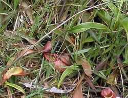 Nepenthes thorelii occurs in seasonally dry savannah grassland from sea level to an elevation of 200 m.[1][6] During the dry season it is believed to survive as a dormant rootstock while bushfires burn any above-ground vegetation. New shoots are produced annually with the advent of the wet season.[6][23]