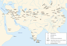 By the end of the 5th century and the middle of the 6th, the area occupied by the Church of the East included "all the countries to the east and those immediately to the west of the Euphrates", including the Sasanian Empire, the Arabian Peninsula, Socotra, Mesopotamia, Media, Bactria, Hyrcania, and India; and possibly also to places called Calliana, Male, and Sielediva (Ceylon).[68] Beneath the Patriarch in the hierarchy were nine metropolitans, and clergy were recorded among the Huns, in Persarmenia, Media, and the island of Dioscoris in the Indian Ocean.[69]