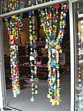 Curtains are often hung on the inside of a building's windows to block the passage of light. For instance, at night to aid sleeping, or to stop light from escaping outside the building (stopping people outside from being able to see inside, often for privacy reasons). In this application, they are also known as "draperies". Curtains hung over a doorway are known as portières.[2] Curtains come in a variety of shapes, materials, sizes, colors and patterns. They often have their own sections within department stores, while some shops are completely dedicated to selling curtains.