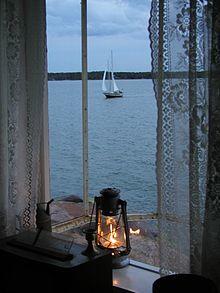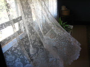 A sheer or net curtain is one that is made from translucent fabric, such as a loosely woven polyester voile or a cotton lace. Sheer curtains allow a majority of light to be transmitted through the fabric, with the fabric weave providing a basic level of UV protection while retaining maximum visibility outward through the curtain. Sheer curtains are sometimes referred to as "privacy curtains" in reference to their screening abilities; during the day most sheer fabrics will allow people inside the home to see the outside view while preventing people outside the home from seeing directly into the home. Due to the loose weave in sheer fabrics, these types of curtains offer very little in the way of heat insulation.