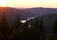 The Obernau Reservoir, which holds 15 000 000 m³ of water is the biggest drinking water reservoir in the Siegerland. A track leading all the way round the reservoir invites hikers. Towering over the reservoir is the Alte Burg, or Old Castle, a "flight castle" (one used mainly for retreat or refuge) and a place of worship from La Tène times about 500 BC. Every New Year's Eve, a Volkslauf ( ≈ fun run) is held there.