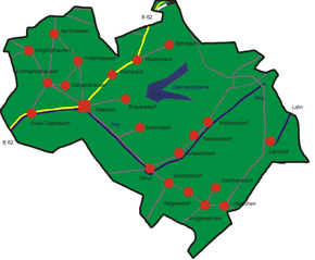 Nenkersdorf lies east of the constituent community of Grissenbach. The historic watermill on the eastern edge of the community is said to be particularly worth seeing.