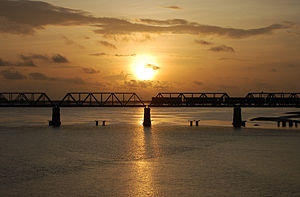 The Netravati River or Netravathi Nadi has its origins at Bangrabalige valley, Yelaneeru Ghat in Kudremukh in Chikkamagaluru district of Karnataka, India. This river flows through the famous pilgrimage place Dharmasthala and is considered as one of the Holy rivers of India. It merges with the Kumaradhara River at Uppinangadi before flowing to the Arabian Sea, south of Mangalore city. This river is the main source of water to Bantwal and Mangalore. The Netravati railway bridge is one of the known bridges which serve as the gateway to Mangalore.