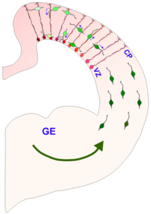 - ^ a b Nadarajah B, Brunstrom J, Grutzendler J, Wong R, Pearlman A (2001). "Two modes of radial migration in early development of the cerebral cortex". Nat Neurosci. 4 (2): 143–50. doi:10.1038/83967. PMID 11175874.