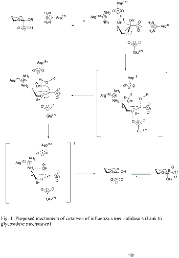 - ^ Taylor NR, von Itzstein M (March 1994). "Molecular modeling studies on ligand binding to sialidase from influenza virus and the mechanism of catalysis". Journal of Medicinal Chemistry. 37 (5): 616–24. doi:10.1021/jm00031a011. PMID 8126701.