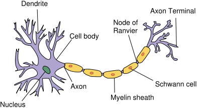 Neurons are known as excitable cells because on its surface membrane there are an abundance of proteins known as ion-channels that allow small charged particles to pass in and out of the cell. The structure of the neuron allows chemical information to be received by its dendrites, propagated through the perikaryon (cell body) and down its axon, and eventually passing on to other neurons through its axon terminal. These voltage-gated ion channels allow for rapid depolarization throughout the cell. This depolarization, if it reaches a certain threshold, will cause an action potential. Once the action potential reaches the axon terminal, it will cause an influx of calcium ions into the cell. The calcium ions will then cause vesicles, small packets filled with neurotransmitters, to bind to the cell membrane and release its contents into the synapse. This cell is known as the pre-synaptic neuron, and the cell that interacts with the neurotransmitters released is known as the post-synaptic neuron. Once the neurotransmitter is released into the synapse, it can either bind to receptors on the post-synaptic cell, the pre-synaptic cell can re-uptake it and save it for later transmission, or it can be broken down by enzymes in the synapse specific to that certain neurotransmitter. These three different actions are major areas where drug action can affect communication between neurons.[3]