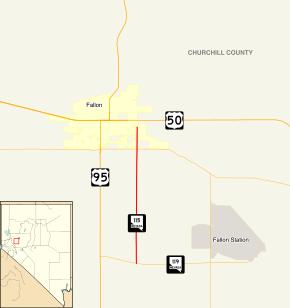 State Route 115 (SR 115) is a state highway outside the city of Fallon, Nevada in the United States. Known as Harrigan Road, SR 115 starts at an intersection with SR 119 (Berney Road) and runs north to an intersection with Stillwater Avenue, paralleling U.S. Route 95 (US 95).