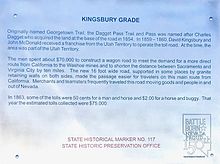 A road connecting Lake Tahoe to the Carson Valley, situated in the approximate location of today's SR 207, appears on Nevada state maps as early as 1919.[4] By 1929, this unimproved road was included in the state highway system as the northwestern end of the former SR 19, a longer route stretching from Lake Tahoe through Minden and south to the California state line near Holbrook.[5] This section of the former SR 19 was 13 miles (21 km) long,[6] about 9 miles (14 km) of which comprised the Kingsbury Grade portion of highway.[7] SR 19 through the mountains remained unimproved for many years; the route was not paved until 1967.[8] By 1968, the eastern end of the Kingsbury Grade was moved southwards to line up with what is now Mottsville Lane, mirroring the approximately 11 miles (18 km) alignment of the present highway.[9]