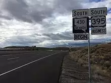 | Interchange; US 395 exit 72; northern terminus of US 395 Bus. and SR 430 | |||||