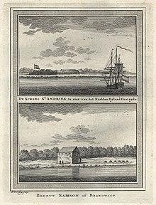 New Amsterdam has its origins in a village which grew up alongside Fort Nassau in the 1730s and 1740s. The first Nieuw Amsterdam, as it was called then, was situated about 90 km (56 mi) up the Berbice River on the right bank. Before the 1763 slave uprising it comprised a Court of Policy building, a warehouse, an inn, two smithies, a bakery, a Lutheran church and a number of houses, among other buildings. Built in 1740 by the Dutch, New Amsterdam was first named Fort Sint Andries. It was made seat of the Dutch colonial government in 1790. In 1803 it was taken over by the British.[3]