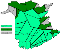 The party ran full slates in Northumberland, Westmorland and Victoria counties, which have mixed English-speaking and Acadian populations, and a full slate in the Acadian-but-bilingual Restigouche county. The party also nominated one candidate in Kent County, two in Gloucester County. No candidates for the CoR ran in the very unilingual French Madawaska County. The Progressive Conservatives, which ran a full slate of 58 candidates, received only 20.7% of the vote.