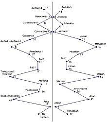 Fomenko lists a number of pairs of unrelated dynasties – for example, dynasties of kings of Israel and emperors of late Western Roman Empire (AD 300–476) – and claims that this method demonstrates correlations between their reigns. (Graphs which show just the length of the rule in the two dynasties are the most widely known; Fomenko's conclusions are also based on other parameters, as described above.) He also claims that the regnal history from the 17th to 20th centuries never shows correlation of "dynastic flows" with each other, therefore Fomenko insists history was multiplied and outstretched into imaginary antiquity to justify this or other "royal" pretensions.