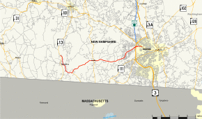 New Hampshire Route 130 (abbreviated NH 130) is a 12.739-mile-long (20.501 km) secondary east–west state highway in New Hampshire. The road runs between Brookline and Nashua, passing through the town of Hollis in the middle.