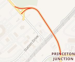 Route 64 begins at an intersection with County Route 526, County Route 571, and Mercer County Route 615 in the community of West Windsor. From this point, County Routes 526 and 571 continue along the right-of-way towards U.S. Route 130. The route heads north and crosses over Amtrak's Northeast Corridor before it passes to the north of a local bus depot. Route 64 continues westward for a short distance, crossing through a local woodland and behind several local homes. The route makes a gradual curve to the west off the railroad bridge and passes behind a couple of homes before heading to the south slightly at an intersection. Route 64 reaches its northern terminus and County Route 526 and County Route 571 make a right turn to head northwest toward U.S. Route 1 and Princeton.[3]
