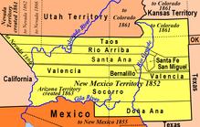 Map of the later Arizona and New Mexico Territories, split from the original New Mexico Territory of 1851, showing existing counties | |||||||||||||||||