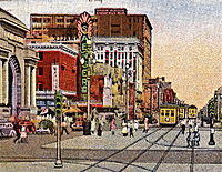 The Saenger Theatre opened on February 4, 1927. The 4,000-seat theatre[4] took three years to build and cost $2.5 million.[5] Its opening prompted thousands to parade along Canal Street. The top ticket price was 65 cents, and the bill for each performance included a silent movie and stage play (produced by the Paramount-Publix Corporation), and music from the Saenger Grand Orchestra.[6]