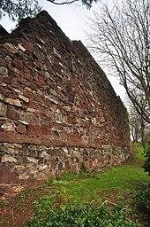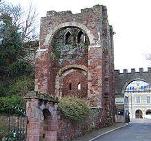 Many ancient buildings of Devon Red Sandstone can be found in Exeter the ancient capital of Devon,[3] notably the castle, Roman / medieval city walls, several churches and many buildings of the Cathedral Close. The local quarry was at Heavitree by which name the local sandstone – actually a type of breccia – is generally known.[4]
