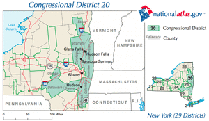 The 20th congressional district of New York is a congressional district for the United States House of Representatives in New York's Capital District. It includes all of Albany and Schenectady counties, and portions of Montgomery, Rensselaer, and Saratoga counties.