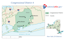The 4th congressional district of New York is a congressional district for the United States House of Representatives in central and southern Nassau County, represented by Democrat Kathleen Rice since 2015.
