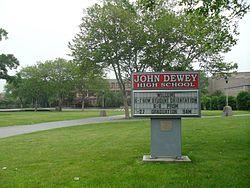 John Dewey High School's 13 acre campus, Dewey is the only public school in New York City to have a 13-acre campus. A bronze statue is also situated on the campus titled "The Key to Knowledge" symbolizing progressive education.