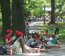 Shakespeare in the Park (or Free Shakespeare in the Park) is a theatrical program that stages productions of Shakespearean plays at the Delacorte Theater, an open-air theater in New York City's Central Park. The theater and the productions are managed by The Public Theater and tickets are distributed free of charge on the day of the performance. Originally branded as the New York Shakespeare Festival (NYSF) under the direction of Joseph Papp, the institution was renamed in 2002 as part of a larger reorganization by the Public Theater.[1]