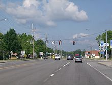 In 1908, the New York State Legislature established Route 30, an unsigned legislative route extending from Niagara Falls, Niagara County in the southwest to Rouses Point, Clinton County, in the northeast. From Rochester to Red Creek, Route 30 was assigned to Ridge Road. Between Red Creek and the hamlet of Union Square (now Maple View) in the town of Mexico, it included most of modern NY 104. At the same time, the roadway alongside the Niagara River between Ridge Road in Lewiston and Pine Avenue in downtown Niagara Falls was designated, but not signed, as part of Route 18.[16][17] By 1914, Route 30 was amended to also include the section of Ridge Road from Porter (modern NY 429) to Ridgeway (NY 63).[16][17][18] In 1914,[18][19] another section—from Ridgeway to the Orleans–Monroe county line—was also included in Route 30's definition as a spur route.[16][17] The spur route became part of Route 30 on March 1, 1921, when the mainline route was realigned to follow Ridge Road between Ridgeway and Rochester.[20]