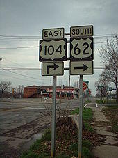 US 104 was assigned across Upstate New York in April 1935, extending from Niagara Falls to Maple View via Lewiston, Rochester, and Oswego. It overlapped NY 18 from Niagara Falls to Lewiston and replaced NY 3 and NY 31 from Lewiston to Maple View (except from Red Creek to Oswego, where US 104 followed NY 3F instead). As a result, NY 31 was shifted south onto most of its modern alignment while NY 3 was rerouted south of Watertown to follow what had been NY 3D. Although US 104 was technically a child route of US 4, it did not connect to US 4.[15] A highway extending eastward from US 11 and US 104 at Maple View to NY 13 in Williamstown was designated as NY 126 c. 1940.[29][30]