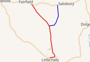 NY 170A is a 2.95-mile (4.75 km) spur connecting NY 170 to the hamlet of Salisbury in Fairfield, where it ends at NY 29.[2] NY 170A was designated by 1931.[6]