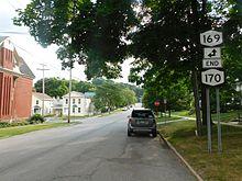 New York State Route 170 (NY 170) is a 7.33-mile-long (11.80 km) north–south state highway in Herkimer County, New York, in the United States. It runs from NY 169 in the city of Little Falls to NY 29 in the town of Fairfield. It has only one other junction with a signed state highway, that being NY 170A, its spur route in the town of Fairfield. NY 170 was assigned as part of the 1930 renumbering of state highways in New York and has not been altered since.