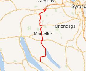 The village of Marcellus was first settled in 1794 at the intersection of two transportation routes: an old Iroquois trail running east–west (later to become the Seneca Turnpike) and the north–south Nine Mile Creek.[9] At the beginning of the 19th century, land travel along the Nine Mile Creek was very difficult and most travel between Marcellus and the settlements along Onondaga Lake was by water.[9] In 1831 the New York State Legislature authorized the construction of a road to follow Nine Mile Creek from Marcellus towards the town of Salina at Onondaga Lake.[10]