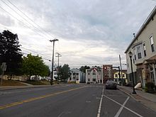 In 1855, the road from Marcellus to Camillus along the Nine Mile Creek route was improved by the Camillus and Marcellus Plank Road Company, which was first chartered in 1849, and in 1853 were authorized to collect tolls from travelers using the road.[11] The improvement of the road led to it becoming a stagecoach route in the middle of the 19th century.[12] The former plank road alignment in the village of Marcellus (North Street) and the southward continuation along Cherry Street (now South Street) was paved in 1911 as part of the construction of a new state highway that would pass through the town.[13][14]