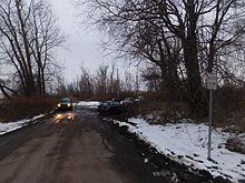 NY 261 begins at an intersection with NY 104 (Ridge Road) on the Greece–Parma town line. It is initially known as Manitou Road, a highway designated as CR 208 by Monroe County south of NY 104. The route heads northward, following the boundary between Greece and Parma as it traverses a predominantly rural portion of Monroe County. After 2.5 miles (4.0 km) of sporadic development amongst open fields and wooded areas, NY 261 enters the small hamlet of West Greece, where it meets NY 18 at Latta Road. The east–west route turns north here, overlapping with NY 261 for 0.4 miles (0.6 km) before turning westward onto Parma Center Road. Past NY 18, the amount of development remains sporadic well into northwestern Monroe County.[4]