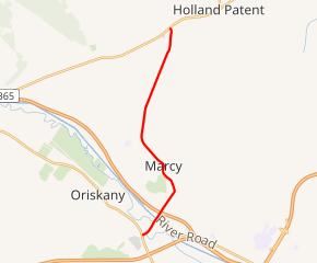 NY 291 begins at an intersection with NY 69 just north of the village of Whitesboro in the town of Whitestown. It travels northeast from this point, crossing over and briefly paralleling the Mohawk River as it enters the town of Marcy. Not long afterward, the route crosses over the Erie Canal and intersects River Road,[3] the pre-Utica–Rome Expressway routing of NY 49,[4] on the northern bank of the canal. Just north of River Road, NY 291 meets the aforementioned expressway at a partial cloverleaf interchange. The route continues on to Careys Corners, a small community centered around the junction of NY 291 and Old River Road one mile (1.6 km) from NY 69. After another mile (1.6 km) through a lightly populated area of Marcy, NY 291 heads north toward the hamlet of Marcy at a fork with Hayes Road.[3]