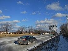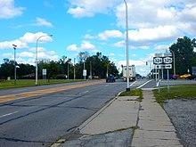 According to the New York State Department of Transportation (NYSDOT), NY 324 begins at NY 384 in eastern Niagara Falls. NY 324 heads south, overlapping with I-190 (the Niagara Section of the New York State Thruway) across the North Grand Island Bridge to Grand Island, where it leaves the expressway at exit 20.[4] However, as signed, NY 324 begins at the north end of Grand Island, where it splits off from the Interstate Highway as Grand Island Boulevard. South of exit 20, the official and signed routings are identical.[5]