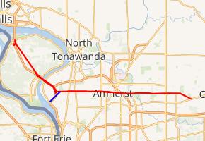 | Town of Tonawanda | 7.42 | 11.94 | Exit 17 (I-190 / Thruway) | ||