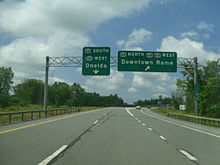 Oneida | Verona | 3.47 | 5.58 | ![]() ![]() ![]() | Eastern terminus, access to I-90 via NY 365 east |