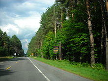 In the mid-1940s, NY 365 was realigned between Wawbeek and Bloomingdale to overlap NY 3, bypassing Lake Clear and Gabriels in order to serve Saranac Lake instead.[17][18] The route was altered again on January 1, 1949, to bypass Oneida to the east and connect to NY 5 in Oneida Castle. Its former routing through Oneida became NY 365A.[19] NY 365 was truncated southwestward to its junction with NY 12C west of Holland Patent in the late 1950s, eliminating the bevy of overlaps between NY 365 and other routes in the North Country.[20][21] The overlap between NY 365 and NY 46A was eliminated in the early 1950s after NY 46A was renumbered to NY 274 and truncated to run only from Holland Patent to Western.[22][23]